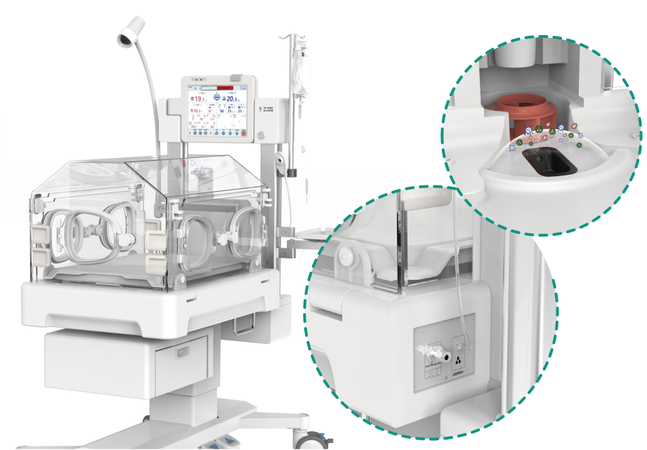 2) تصميم علمي لوضع استنشاق الهواء الدافئ بزاوية 270 درجة بحيث يخلق نظام تدوير هواء متقدم لتقليل الفقد في الحرارة أثناء العملية التمريضية.
