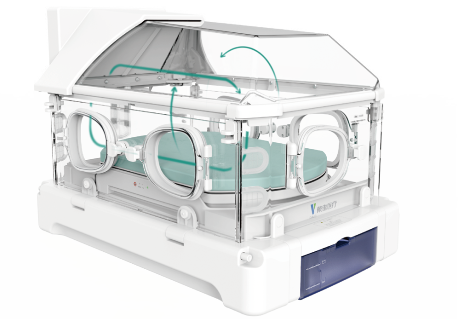 1)360° 双向旋转婴儿床,医护人员可以对新生儿进行全方位的观察、护理;